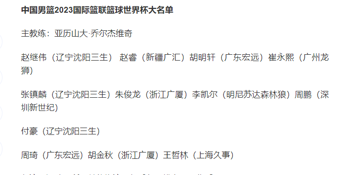 另外,名单中有四人已无缘国家队,具体指王哲林、周鹏、付豪、赵继伟。